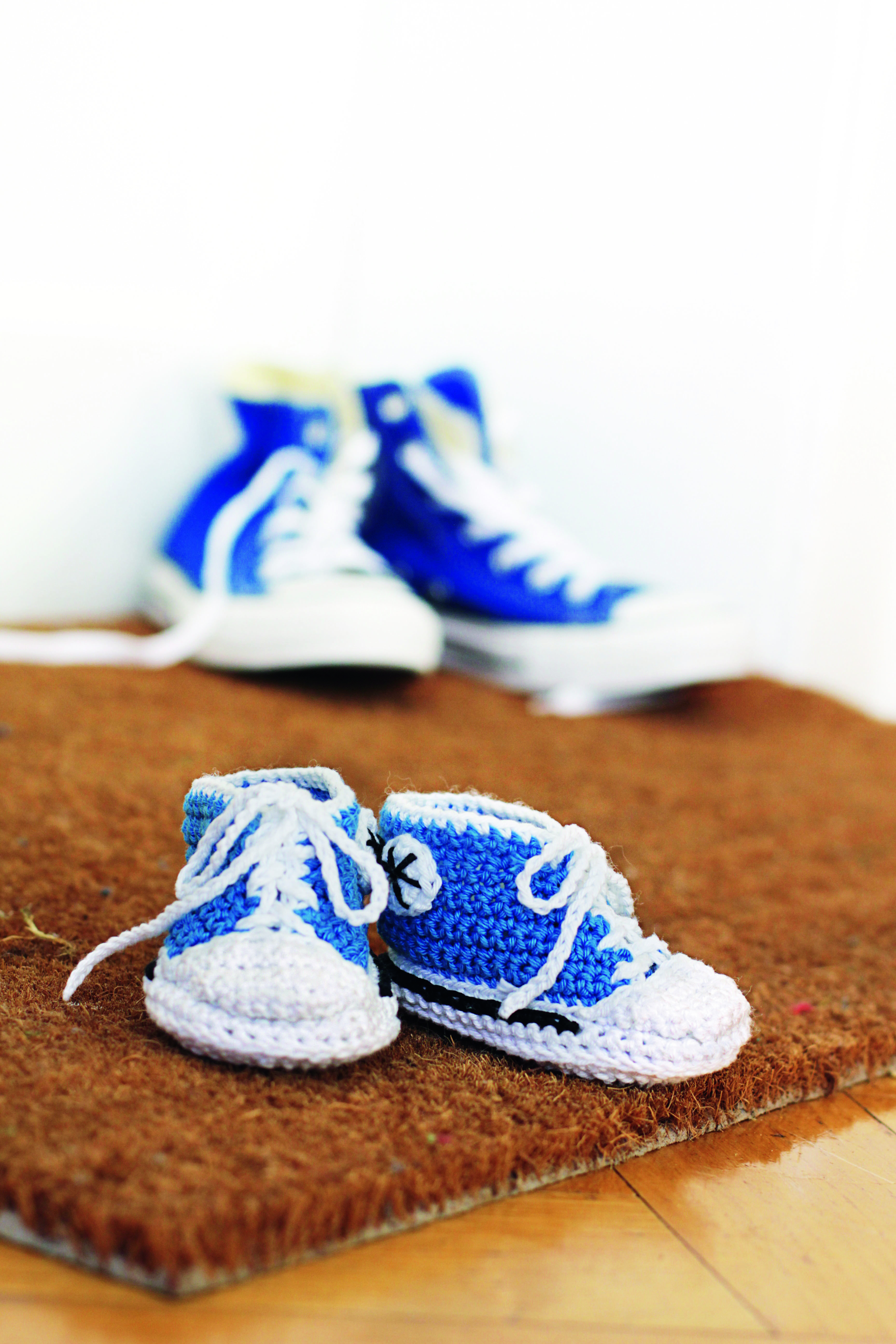 So I’m totally loving these crochet baby basketball shoes (from Baby Shoes to Crochet, by Lucia Förthmann, £7.99, published by Search Press) – even if it is totally unlikely that my little guy will actually get these made for him by his mummy!